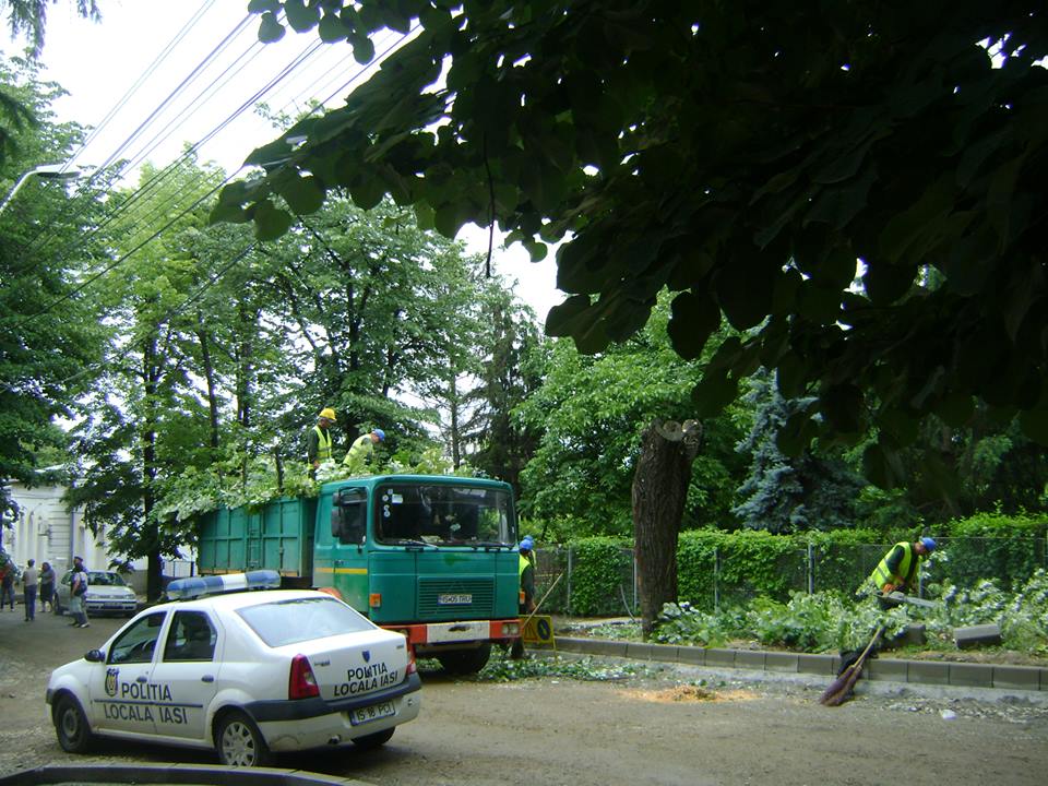 Astazi de Ziua Internationala a Mediului, muncitorii directiei de Servicii Publice din cadrul Primariei Municipiului Iasi au pus la pamant mai mult tei de pe strada Lascar Catargi sub atenta supraveghere a Politiei Locale.