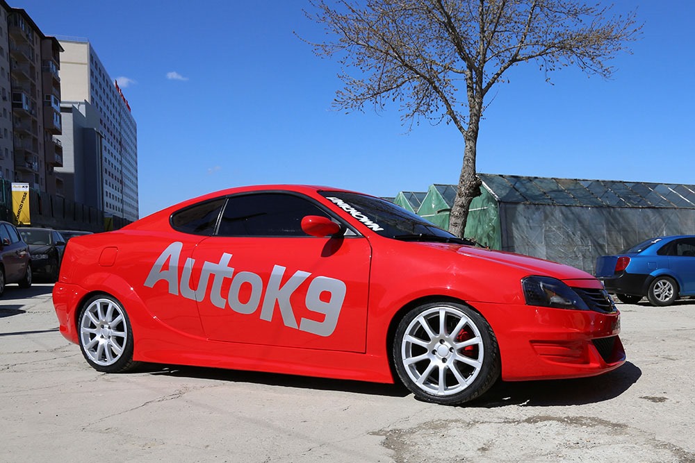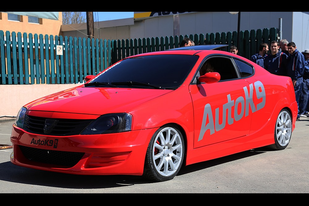 Auto K9 Tuning a inlocuit plafoniera si usile Daciei Logan cu unele de la Hyundai Coupe, au adaugat scaune sport, evacuare cu finale sport, volan sport si o suspensie mult mai rigida, demna de un coupe. Usile au manerele ascunse, acestea deschizandu-se doar prin telecomanda. Automobilul mai are montata o trapa, faruri noi cu LED-uri.