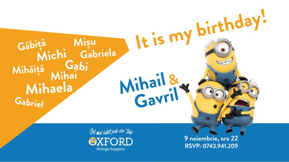 Dacă te numești Mihai, Mihaela, Michi, Mișa, Mihăiță, Misu, Mihnea, Gabriel, Gabi, Găbița, Gabriela si nu numai.. ➡ nu mai sta pe gânduri și hai vineri, 9 noiembrie ora 22:00 la cea mai hazlie si distractiva petrecere în Oxford Pub.