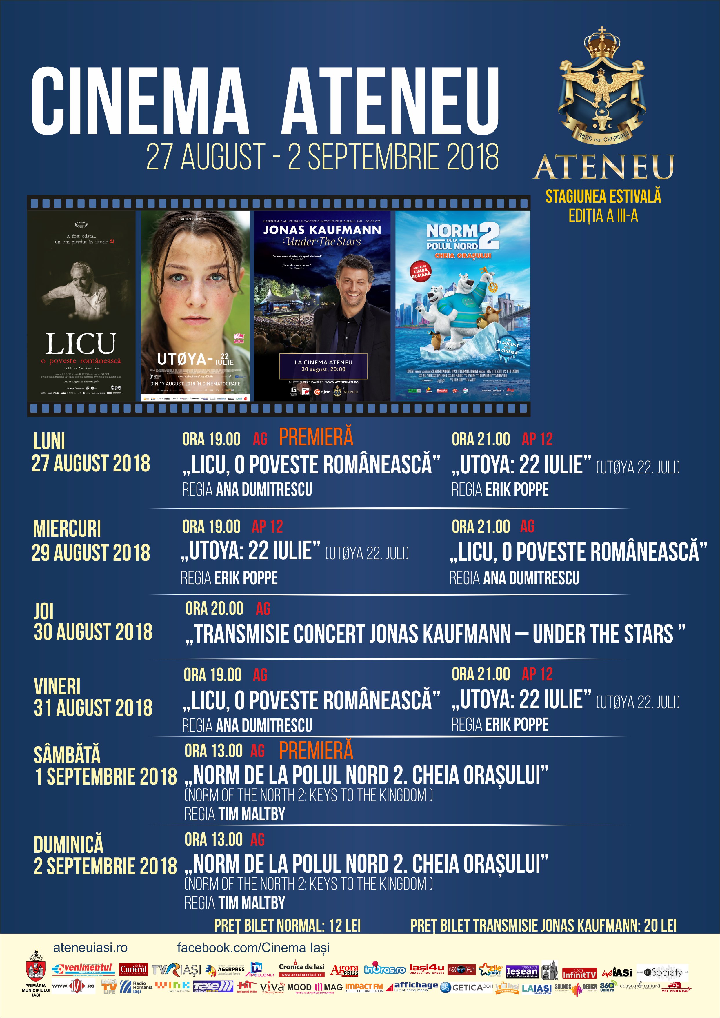 Programul cinematografului Ateneu în perioada 27 august – 2 septembrie