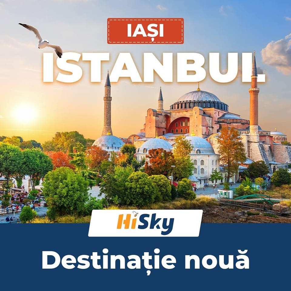 Compania aeriană HiSky și Aeroportul Internațional Iași anunță lansarea rutei Iași-Istanbul (și retur). Începând cu data de 19 martie 2022, zborurile spre Turcia vor fi operate cu două frecvențe pe săptămână: marți și sâmbătă.