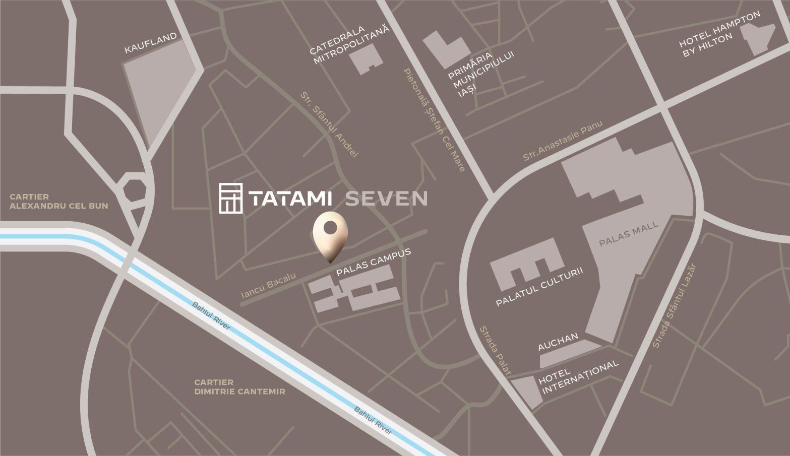 Să ai aproape de casa ta tot ce ai nevoie, de la locul de muncă, instituții de învățământ, până la zonă de entertainment și alte servicii și facilități, să nu mai depinzi de mașină pentru a ajunge în centrul orașului este un deziderat la care răspunde TATAMI SEVEN. Prima clădire rezidențială a companiei IULIUS, ce se construiește în prezent în zona Sf. Andrei, redefinește confortul prin poziționarea sa ultra-centrală, dar și prin accesul la varietatea facilităților din zonă: clinici medicale, cafenele, restaurante, sală de fitness și, în curând, un hypermarket. În Palas Campus este deschis și showroom-ul de prezentare al Tatami Seven, ce poate fi vizitat de luni până vineri, în intervalul orar 09:00 – 17:00.
