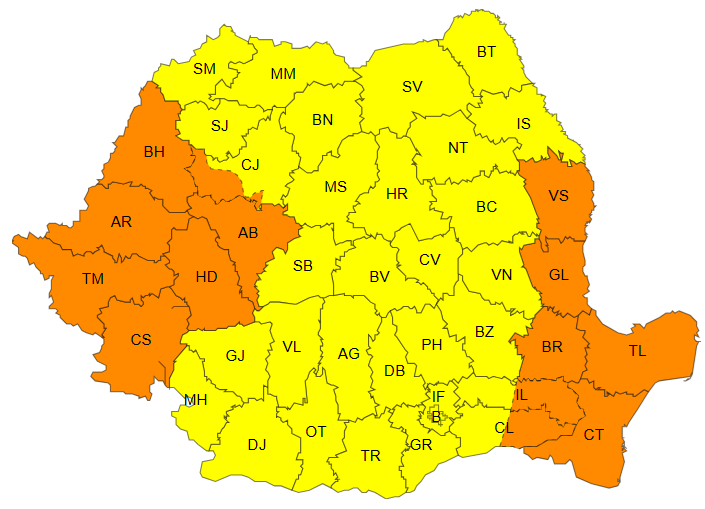 Meteorologii anunță un episod de vreme severă în România, cu ploi abundente și rafale puternice de vânt, ce vor afecta întreaga țară până sâmbătă seara. În special estul și vestul țării vor resimți efectele furtunii, fiind plasate joi sub avertizare Cod Portocaliu.