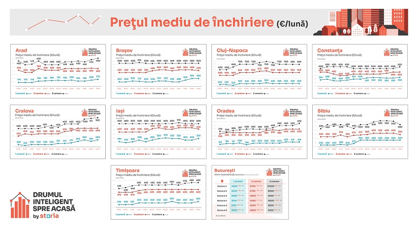 Cum au evoluat chiriile în alte orașe mari din țară, conform datelor Storia
