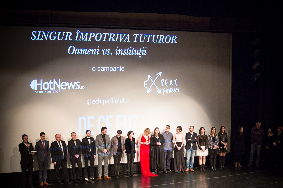În paralel cu filmul a fost lansată și campania „Singur împotriva tuturor”, inițiată de echipa De ce eu?, Expert Forum (EFOR) și HotNews.ro. Este un demers de încurajare a luptei împotriva presiunilor de orice tip, exercitate de către șefi de instituții, politicieni sau magistrați împotriva celor mulți care lucrează în sistem, fie el public sau privat. Pe Hotnews.ro, dar și pe deceeu@hotnews.ro, sunt așteptate povești ale unor oameni care au avut curajul să înfrunte instituții, să demaște ilegalități și abuzuri, să schimbe legi. Cazurile dificile ar putea primi consultanță din partea Expert Forum.