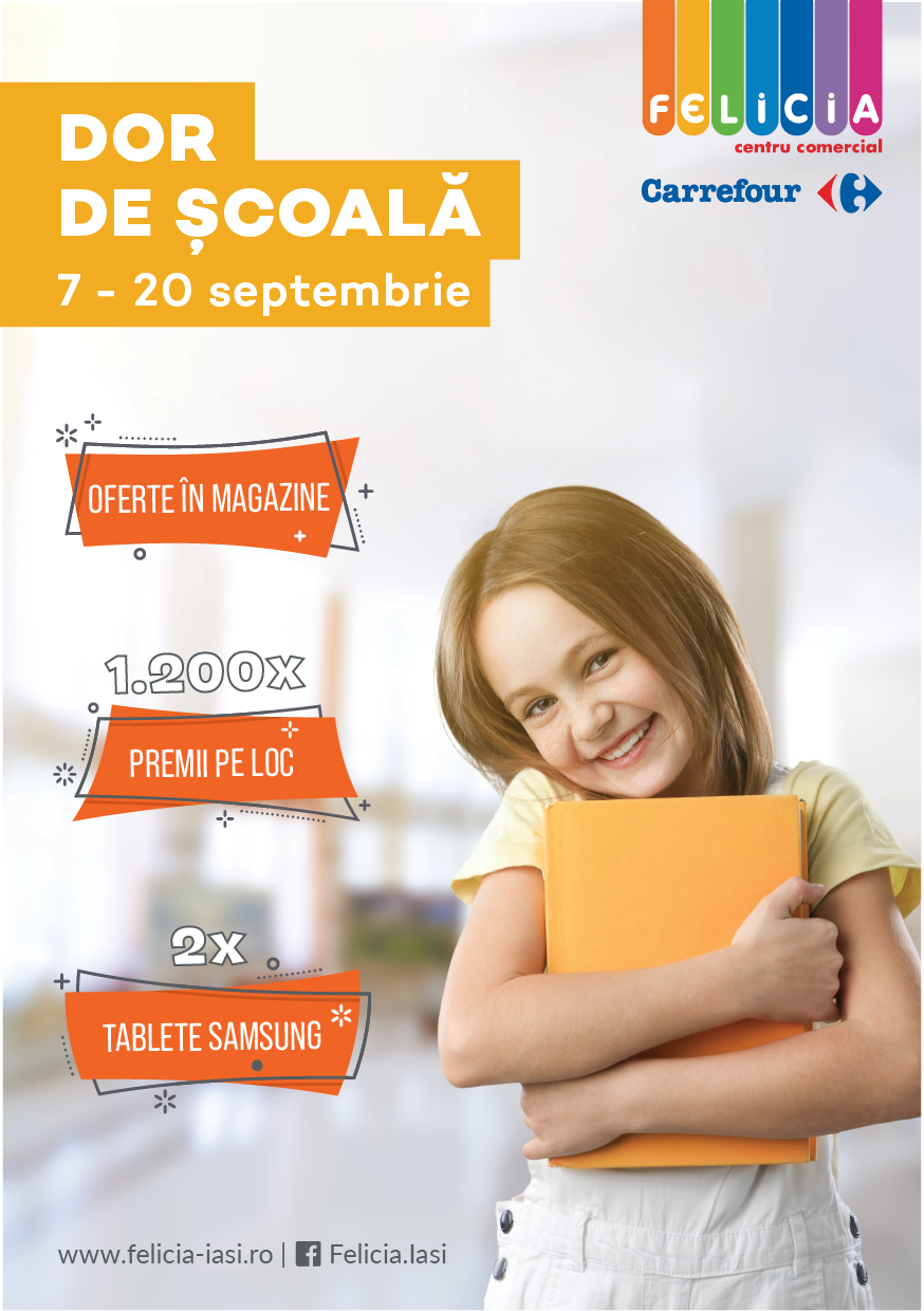 Cui ii este dor de scoala? Cu bune si cu rele, incepe noul an scolar si magazinele din Centrul Comercial Felicia s-au pregatit cu produse si oferte pentru scolari. Desi acest an scolar va fi un pic altfel fata de ceilalti ani, copiii sunt indrumati sa se focuseze pe ceea ce au de invatat si sa faca performanta, in pofida situatiei create de pandemie.