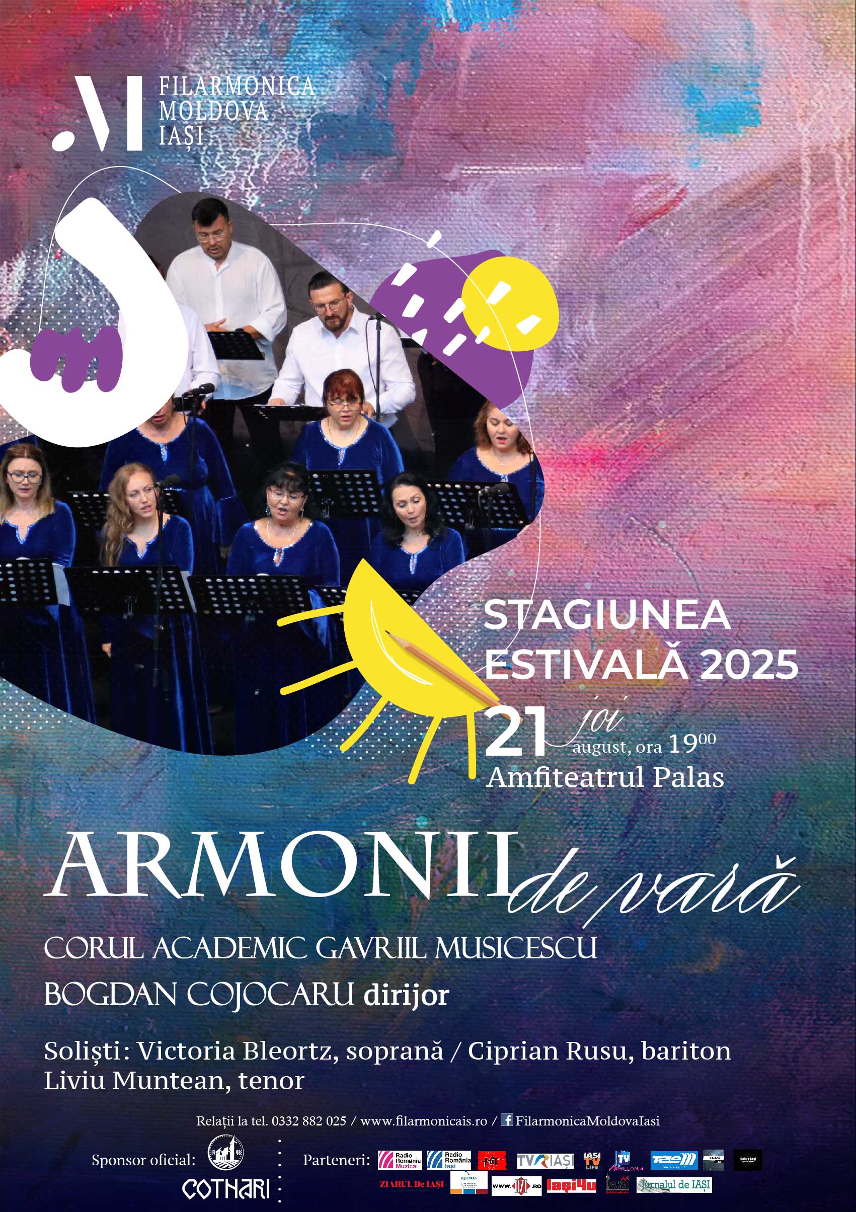 Stagiunea estivală va continua JOI, 21 august 2025, ora 19:00, la AMFITEATRUL PALAS cu un CONCERT CORAL – ARMONII DE VARĂ.