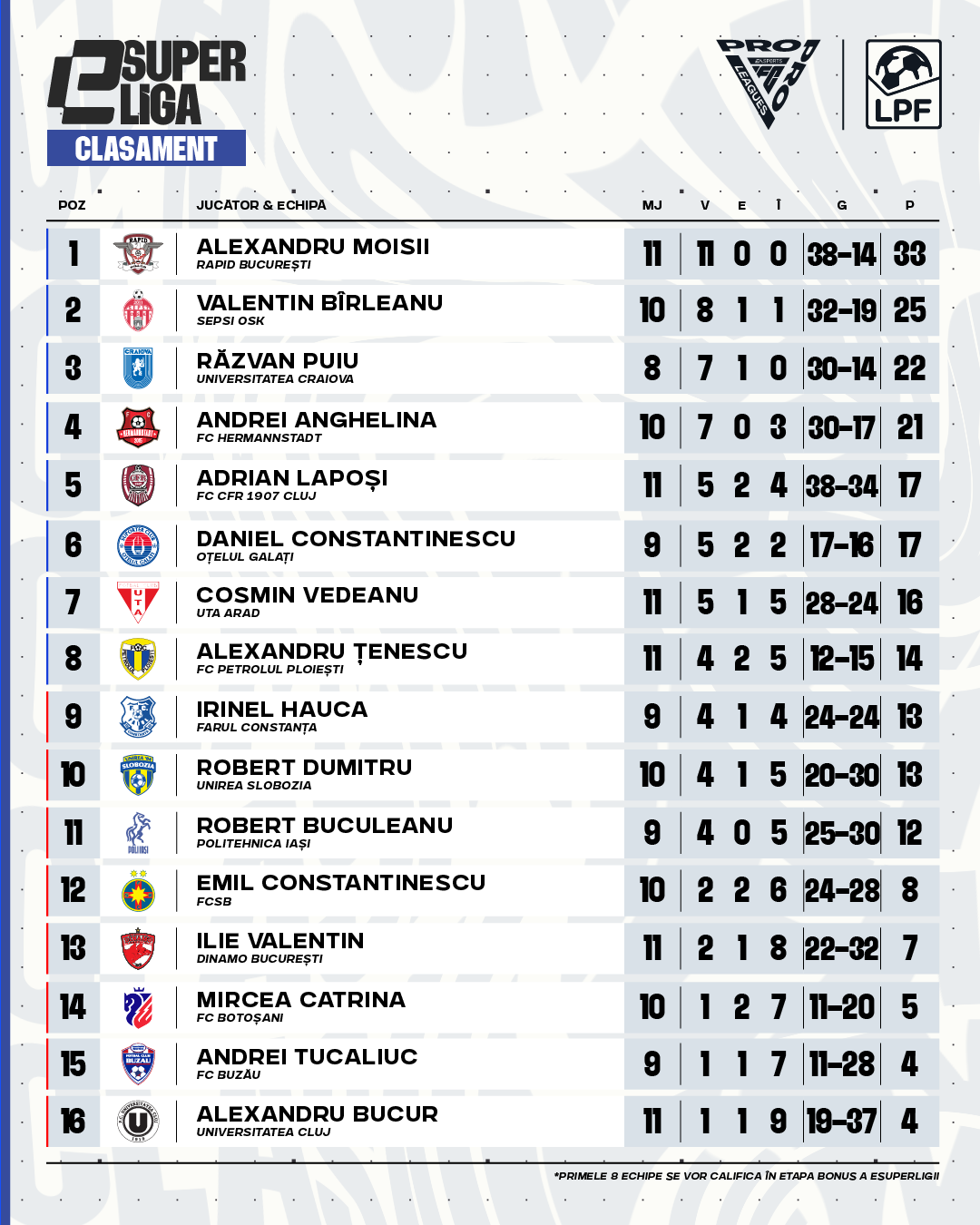 - FC Farul Constanța (Irinel Hauca) vs. FC CFR 1907 Cluj (Adrian Lapoși)