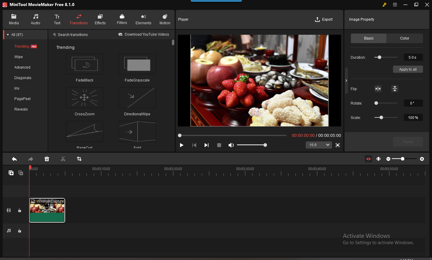 - Tranziții și efecte: Programul vine cu o colecție de tranziții și efecte vizuale care pot fi adăugate cu ușurință pentru a oferi un aspect profesionist videoclipurilor. Utilizatorii pot experimenta cu diferite stiluri și teme pentru a se potrivi cu tonul și scopul conținutului lor.