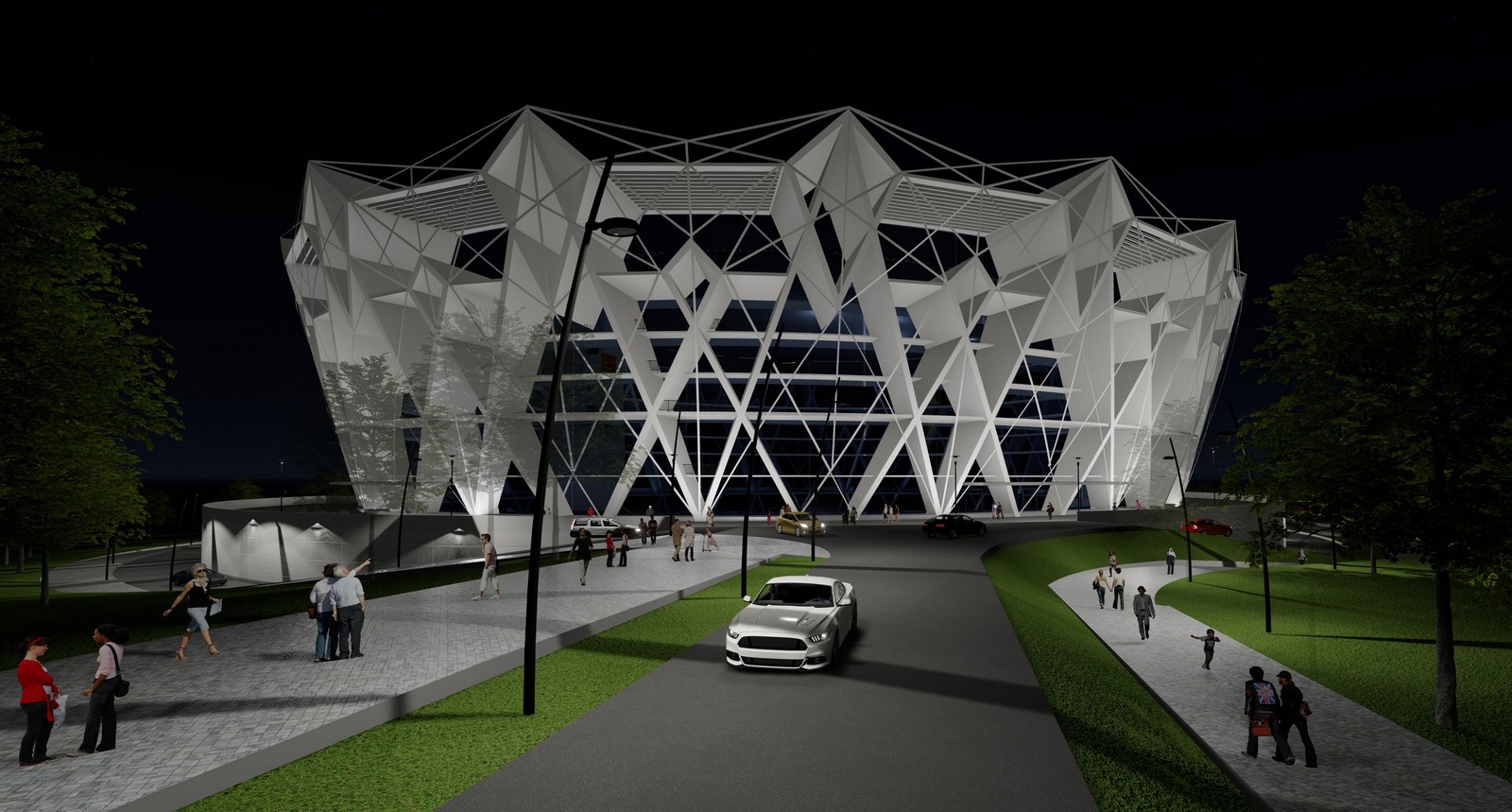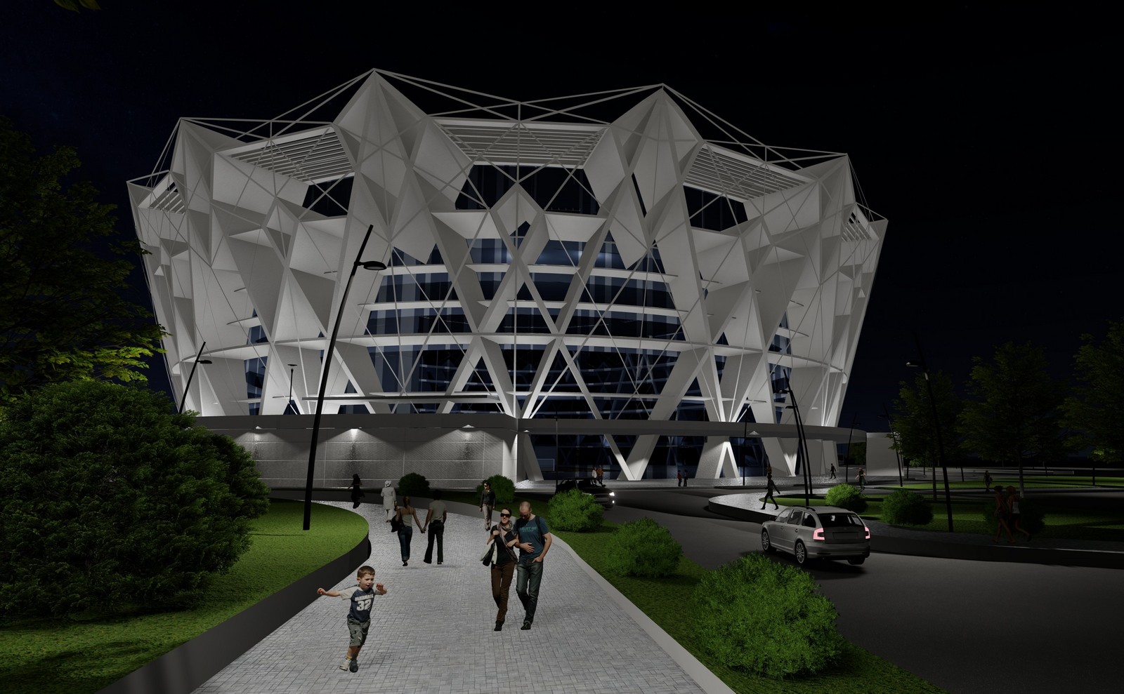 Terenul principal va găzdui mai multe tipuri de competiții: gimnastică (29 metri x 44 metri), handbal (20 metri x 40 metri), baschet (15 metri x 28 metri) și volei (9 metri x 18 metri). Numărul total de locuri în tribune pentru spectatori va fi de 10.212, împărțite astfel: 3.194 la parter, 2.304 la etajul I, 4.714 la etajul II și 106 la etajul III (dedicat presei). Sala va avea multiple facilități de servire pentru public, spații comerciale, garderobe, grupuri sanitare, puncte de prim ajutor, terase exterioare etc, precum și sisteme moderne de comunicare, multimedia și sonorizare.