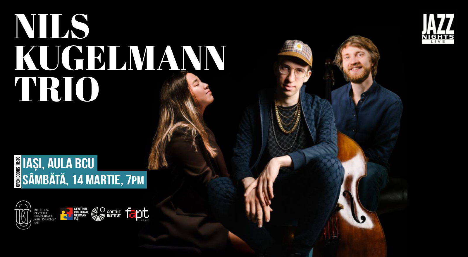 Denumit de criticii muzicali un “bass berserk” și un “mega talent”, NILS KUGELMANN este unul dintre cei mai buni contrabasiști și una dintre cele mai impresionante voci ale jazz-ului Generației Z. Pregătiți-vă așadar pentru un capitol nou, cinematic, cu energie intensă și putere hipnotică, fascinant și cu totul contemporan, elaborat de formula NILS KUGELMANN (double-bass), SHUTEEN ERDENEBAATAR (pian), SEBASTIAN WOLFGRUBER (tobe) .
