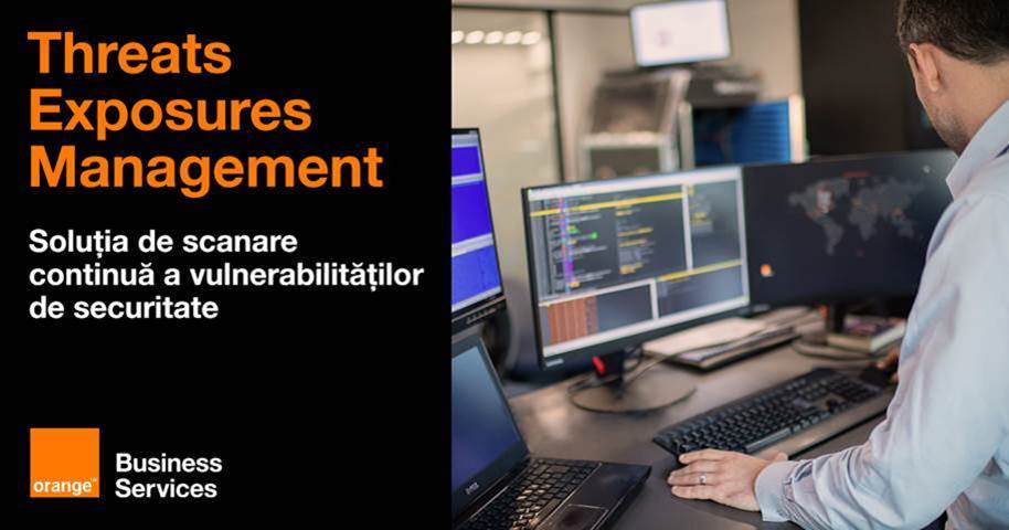 Threats Exposures Management este un produs dezvoltat în România de către o echipă de profesioniști în infosecurity, fiind administrat și integrat în infrastructura Orange Business Services. Soluția ajută la protejarea datelor companiei, la luarea imediată a măsurilor de securitate și prioritizarea rezolvării acestora, fiind accesibilă prin intermediul unei platforme web.