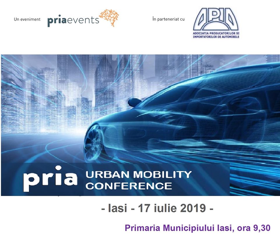 PRIAevents, în parteneriat cu APIA, organizează conferința PRIA Urban Mobility Innovation, 17 Iulie 2019, la Iași, în sala “Vasile Pogor” din cadrul Primăriei Municipiului Iaşi.