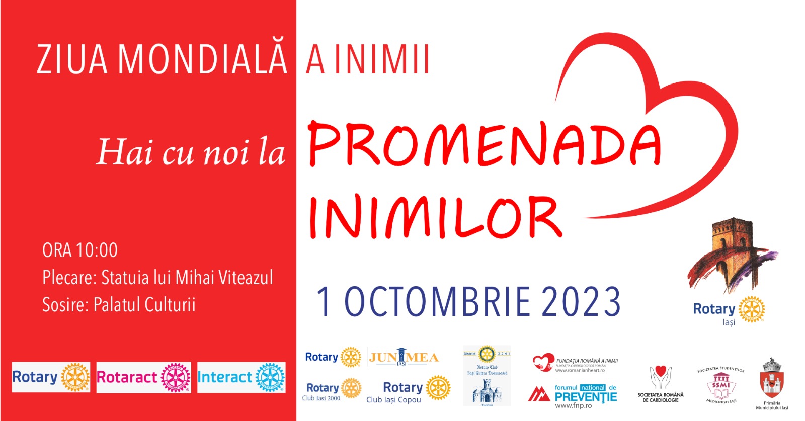 Cluburile Rotary din Iași, împreună cu Societatea Română de Cardiologie și Fundația Română a Inimii, continuă programul ,,Promenada Inimilor 2021”, cu ocazia Săptămânii Mondiale a Inimii.