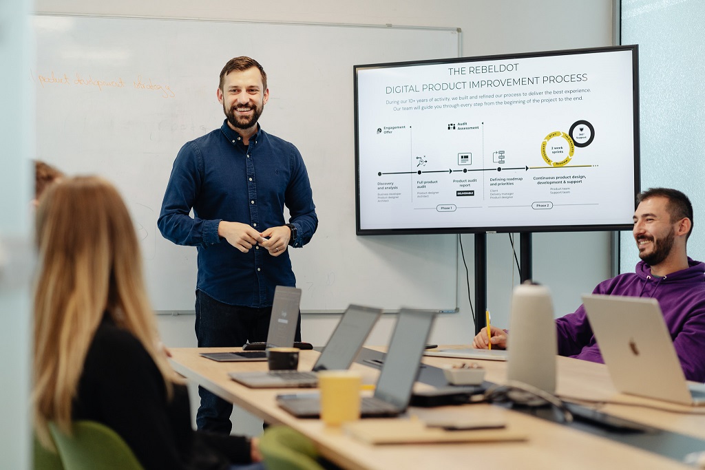 RebelDot este companie românească de dezvoltare de software din Cluj-Napoca, ale cărei servicii susțin branduri globale în accelerarea procesului de digitalizare și inovare. Cu o vastă experiență în dezvoltarea de aplicații web și mobile, pentru un portofoliu de peste 50 de companii din multiple industrii, RebelDot este un partener loial ce sprijină atât companii de tip enterprise, cât și start-up founderi, aflați la început de drum, oferind servicii de consultanță și implementare, de la stadiul de idee, și pana la cel de lansare și mentenanță a produsului digital.