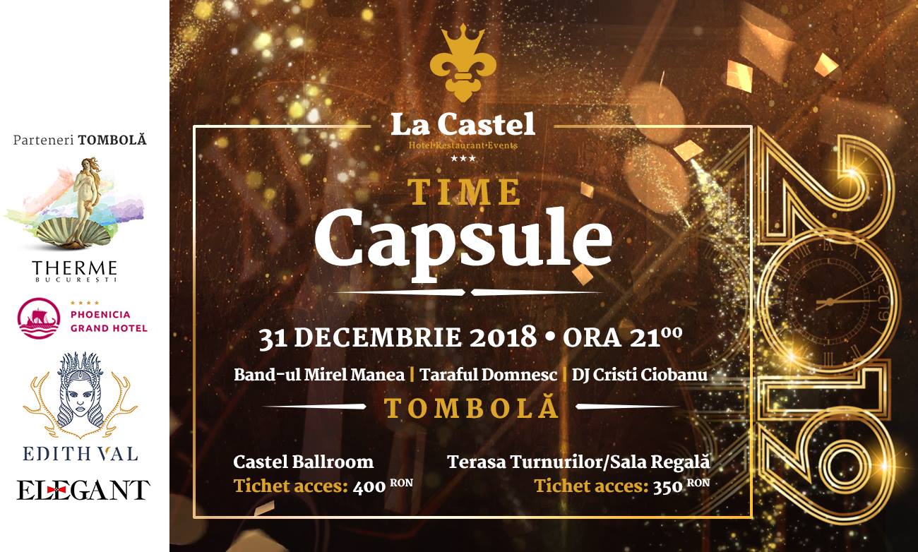Time Capsule se anunță a fi o noapte dintre ani care va rămâne o viață întipărită în amintirea dumneavoastră. Decorațiunile de poveste vă vor purta în timp și vor da viață amintirilor, care se vor revărsa ca o simfonie de emoții pe 31 Decembrie, începând cu ora 21:00.
