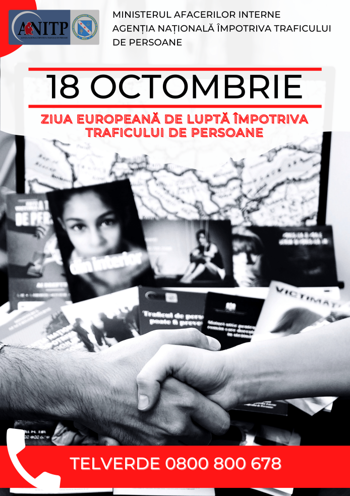 În perioada 18 – 22 octombrie 2021, Agenţia Naţională Împotriva Traficului de Persoane-Centrul Regional Iasi (A.N.I.T.P.) și partenerii săi organizează o serie de evenimente dedicate marcării Zilei Europene de Luptă Împotriva Traficului de Persoane – 18 octombrie, incluse în cadrul campaniei de informare şi prevenire “Săptămâna prevenirii traficului de persoane”.