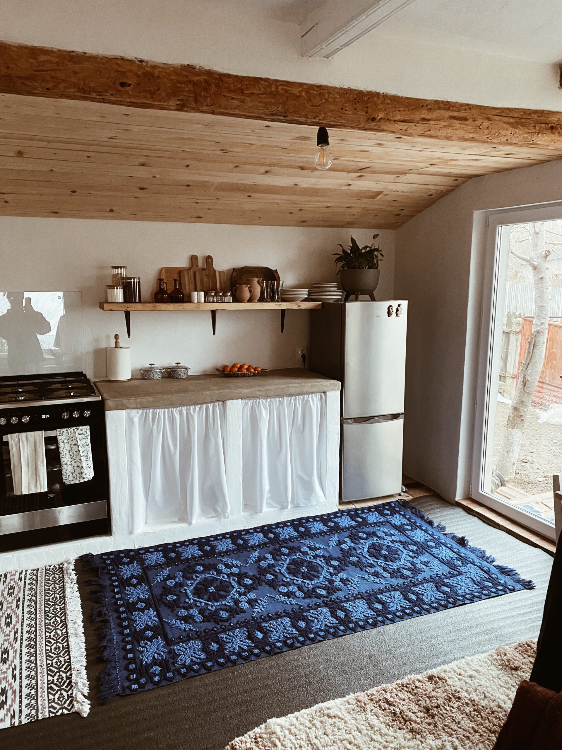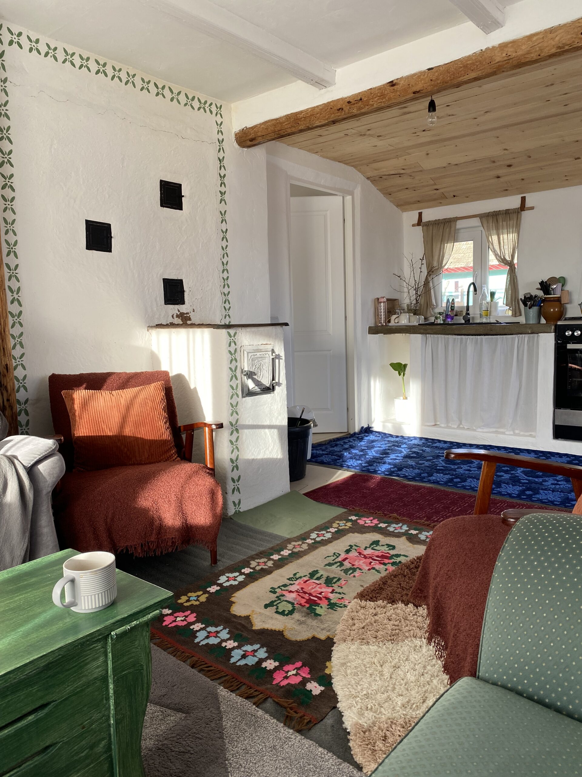 Casa, cu cele două camere despărțite de un hol și cu magazia de lemn în spate, a fost transformată într-un spațiu deschis și luminos. Holul mare primește acum oaspeții cu căldură, iar dormitorul și baia sunt sanctuarele lor personale. Bucătăria și livingul sunt acum inima casei, un spațiu generos și primitor, unde tradiția și modernul se întâlnesc în armonie.