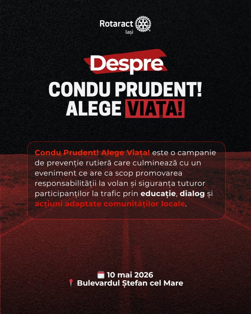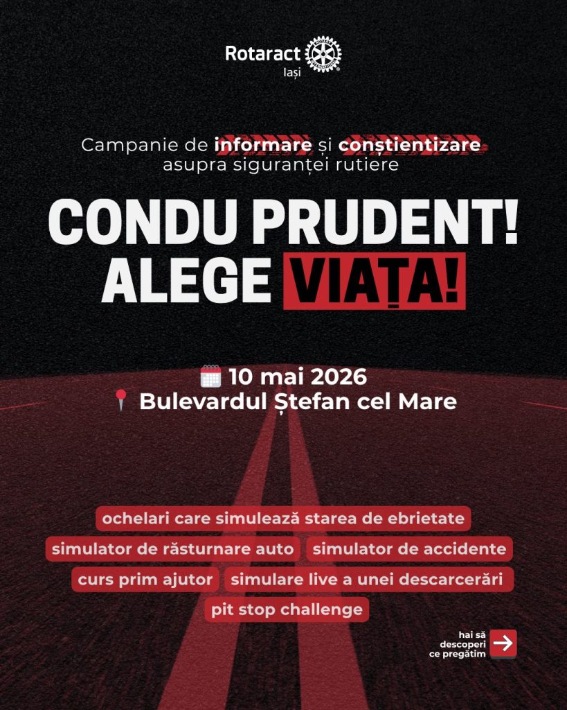 Iașul face un pas important către conștientizarea riscurilor rutiere. Pe 10 mai, zona centrală a orașului se transformă într-un centru de instruire interactiv, unde ieșenii pot învăța, prin experiențe directe și demonstrații de impact, că responsabilitatea la volan este singura care face diferența între viață și moarte.