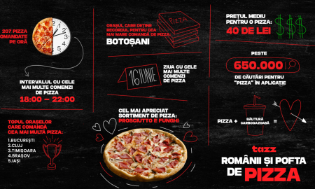 Conform datelor din aplicația Tazz, pizza conduce topul celor mai comandate produse, de la începutul anului și până acum înregistrându-se aproape 5000...