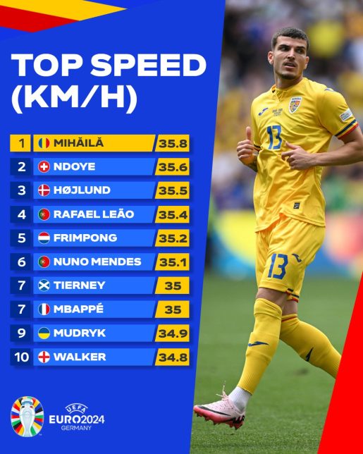 Reprezentativa României a fost învinsă, cu scorul de 2-0, de selecţionata Belgiei, într-un meci disputat la Koln, în etapa a doua a grupei E de la Euro 2024. Au marcat: Tielemans 2, De Bruyne 79. DAR.. jucătorul român Valentin Mihăilă a fost înregistrat cu cea mai mare viteză de până acum la Euro2024: