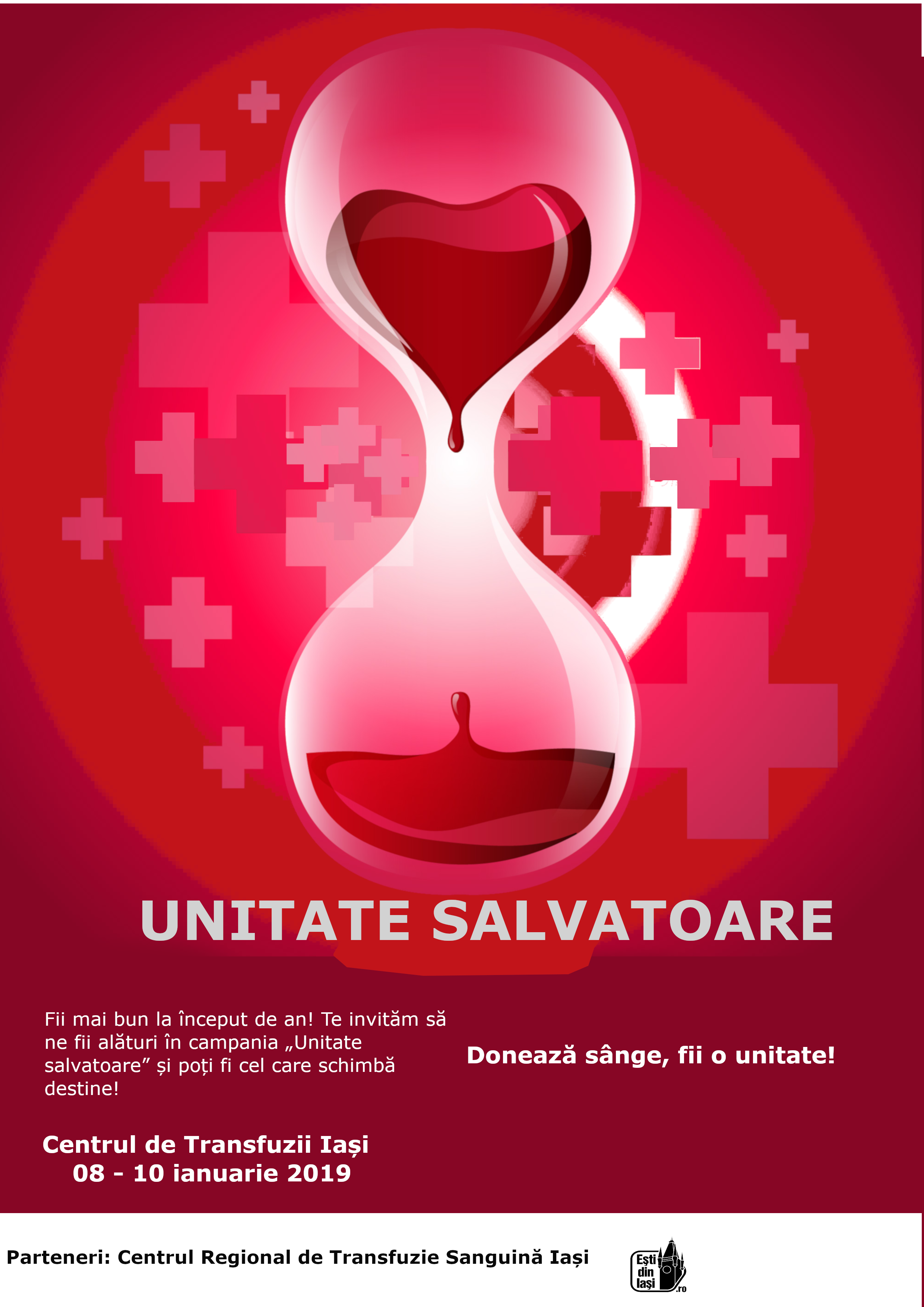 În perioada 8 – 10 ianuarie 2019, la Centrul Regional de Transfuzie Sanguină Iaşi de pe Strada Nicolae Bălcescu nr. 21, între orele 7:00 – 13:00, sunt așteptați să doneze sânge angajații unor multinaționale ieșene. Aceasta este o inițiativă a patru studente de la specializarea „Comunicare și Relații Publice”, din cadrul Facultății de Filosofie și Științe Social-Politice a Universității „Alexandru Ioan Cuza”.