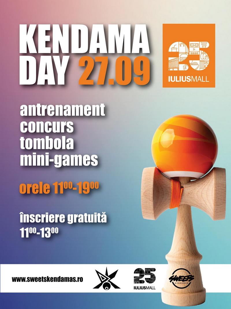 Sâmbătă, de la ora 11:00, pasionații de Kendama, începători sau experimentați, sunt așteptați la Iulius Mall Iași, în zona magazinului Cropp, la Kendama Day, competiția dedicată acestui joc de îndemânare. În prima parte a zilei, se vor organiza demonstrații. Kendama Day continuă cu un concurs cu probe adaptate fiecărui nivel și cu o tombolă cu premii oferite de Depozitul Kendama.